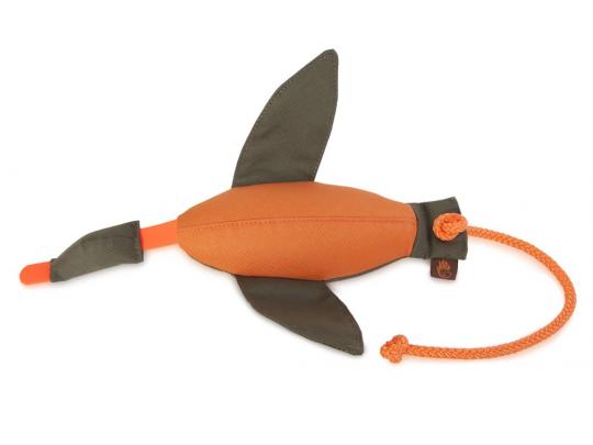 Dummy produsert i slitesterkt canvas formet som en and. Egner seg for bruk både på land og i vann da den flyter.